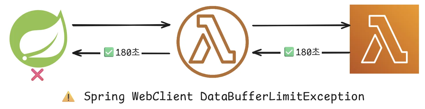 webClient의 기본 메모리 버퍼를 100MB로 넉넉하게 늘리고, Lambda에서 설정한 최대 타임아웃 시간인 180초도 적용 하였습니다.