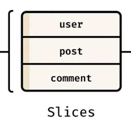 두 번째 depth를 담당하는 슬라이스는 추상적인 것이 아닌 비즈니스 엔티티를 다룬다. 주요 목표는 코드를 값별로 그룹화 하는 것이다. 슬라이스의 이름은 비즈니스 영역에 따라 결정됨으로 표준화 되어있지 않다. 슬라이스 끼리 동일한 격리 규칙을 준수해야하며 이 디렉토리에 있는 코드는 직접적으로 공유되지 않아야 한다.
