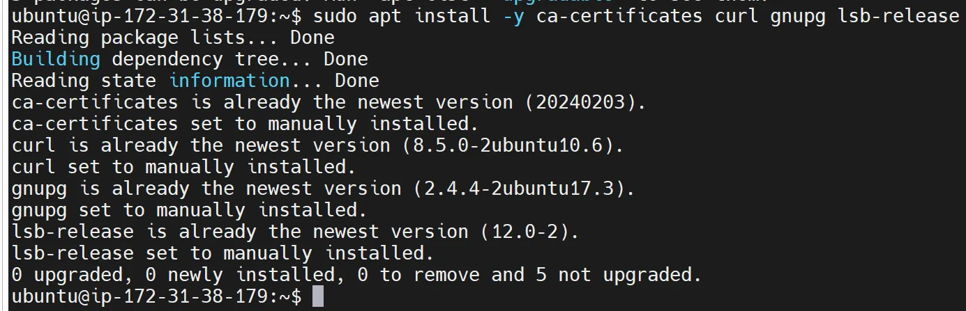 $ sudo apt install -y ca-certificates curl gnupg lsb-release