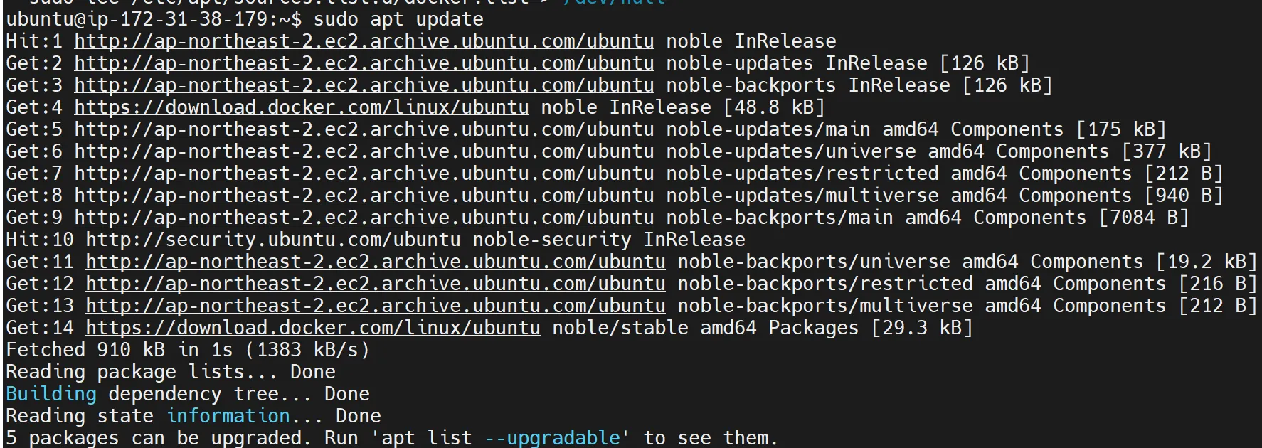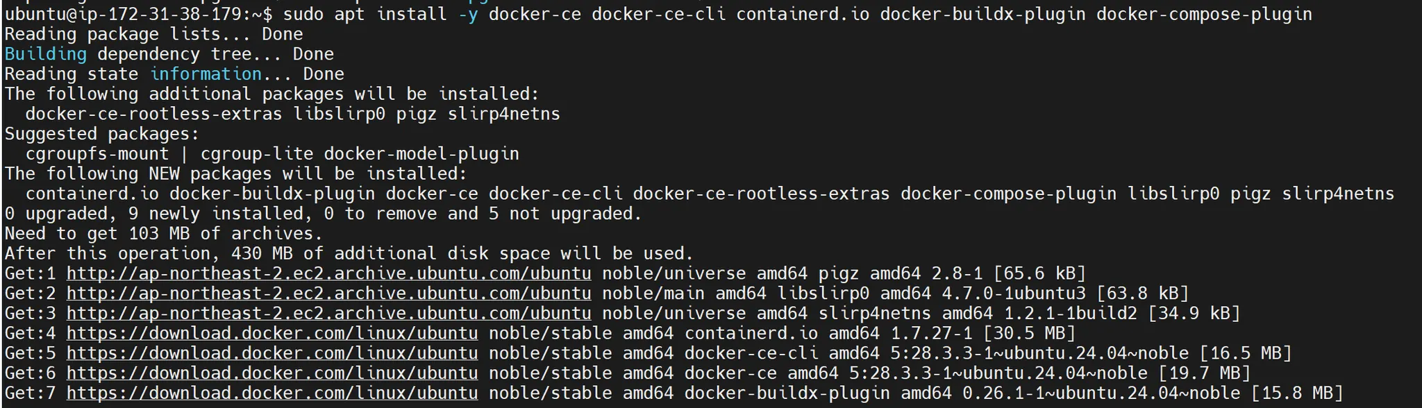 $ sudo apt install -y docker-ce docker-ce-cli containerd.io docker-buildx-plugin docker-compose-plugin