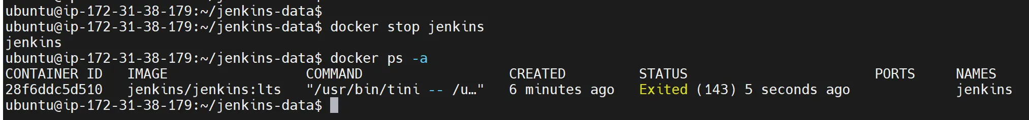설정을 위해 도커 컨테이너 잠시 중지하기