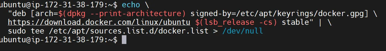 sudo tee /etc/apt/sources.list.d/docker.list > /dev/null