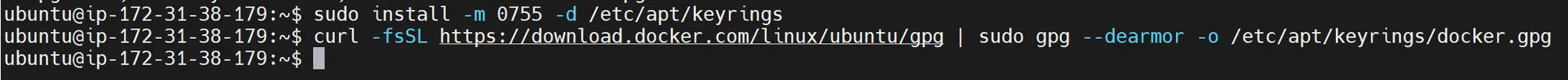 $ curl -fsSL https://download.docker.com/linux/ubuntu/gpg | sudo gpg --dearmor -o /etc/apt/keyrings/docker.gpg