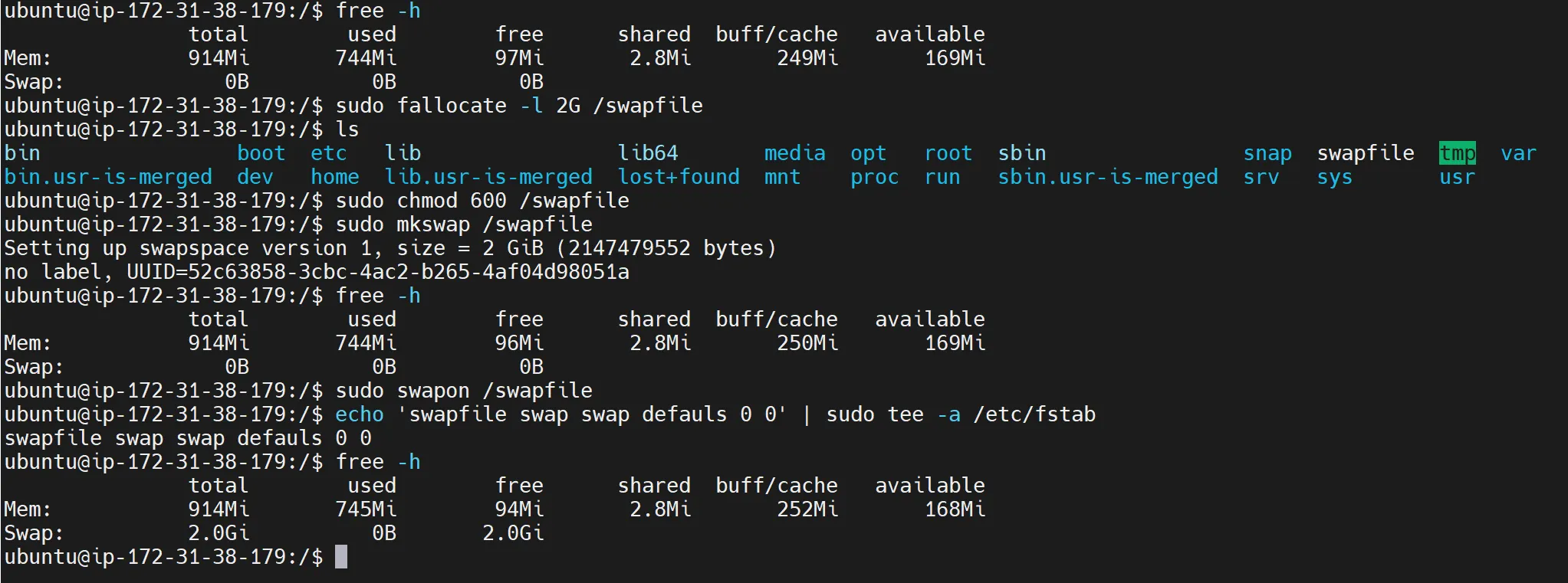 echo '/swapfile swap swap defaults 0 0' | sudo tee -a /etc/fstab