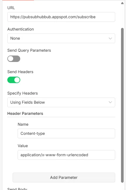 여기서 Body Content Type을 Form Urlencoded로 설정해야함.