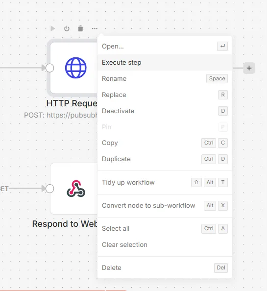 이제 처음에 있던 HTTP 노드의 콜백 주소를 webhook 트리거의 웹훅 URL을 test에서 production으로 바꿔준다.