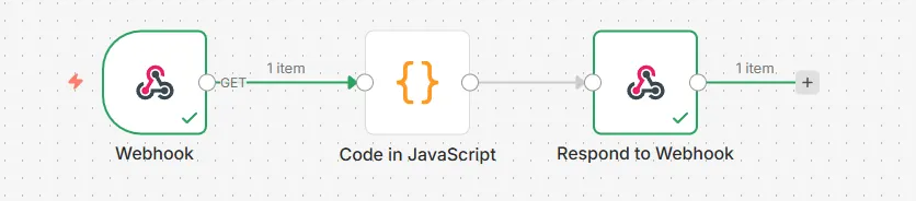 웹훅 트리거와 response 사이에 코드 노드를 하나 추가한다.