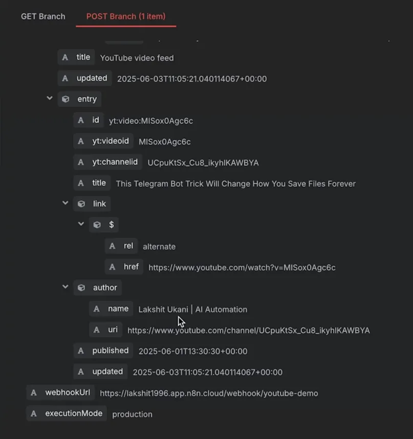 하단의 웹훅 트리거에 들어가면 output에 정보가 나온것을 볼 수 있다.